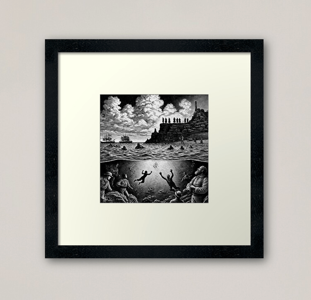 Life can get pretty hectic. Juggling work and parenting makes finding the time to create art often feel like a luxury. I turned to AI art at that point. This tool allowed me to capture the vivid dreams I’d otherwise struggle to bring to life. One such fleeting dream has been preserved and reimagined through the magic of AI. It has transformed into a powerful artwork. The artwork is now available on Redbubble through their print-on-demand service. This piece didn’t just stay as an image. It inspired me to write a poem. The poem gave my dream a voice and narrative it might not have had otherwise.