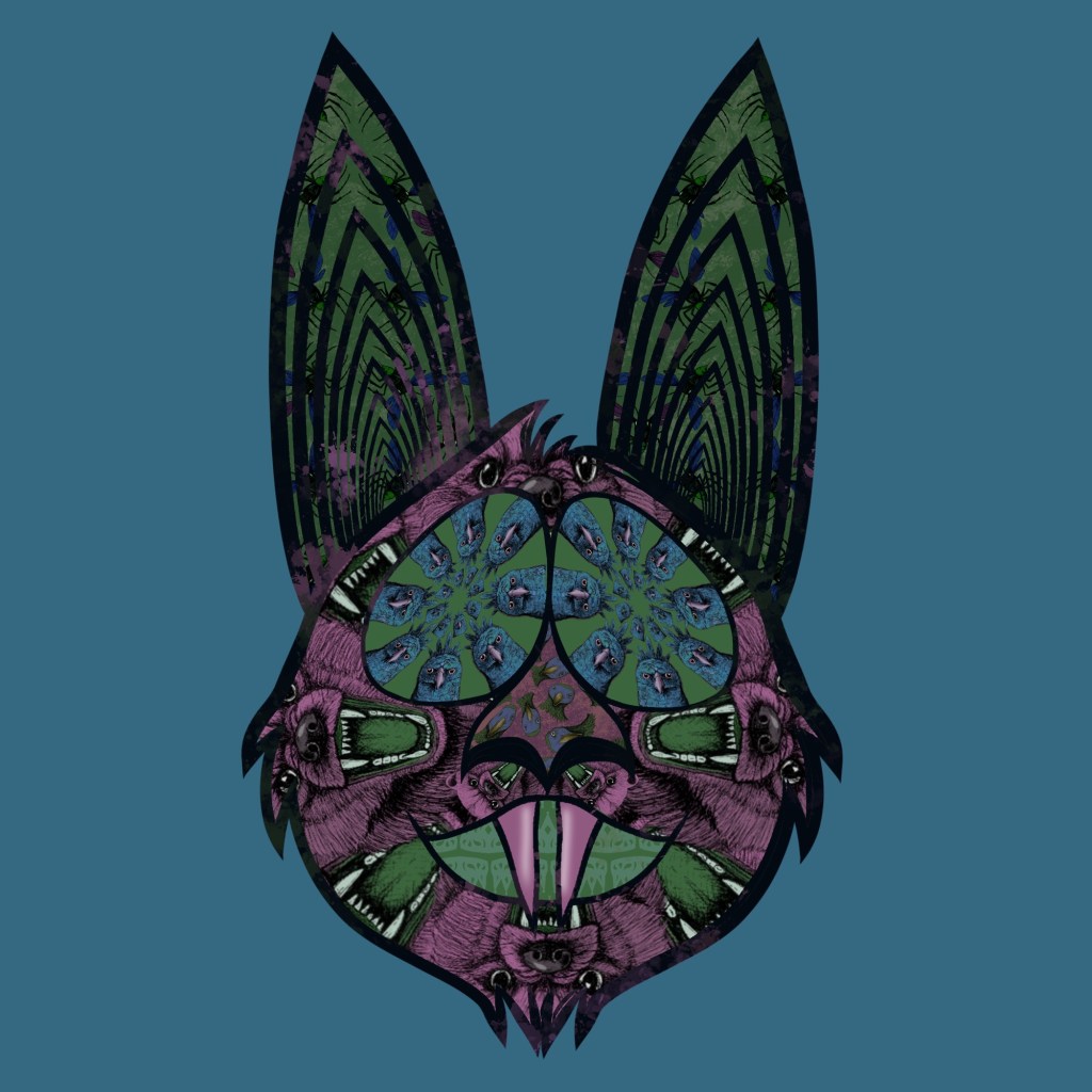 The Hypno Bat is a symbol of my stubborn refusal to die creatively. It’s my artistic cockroach, adaptable, unkillable, surviving every algorithm, every platform collapse, every “AI will replace you” headline. It mutates so it can move forward.