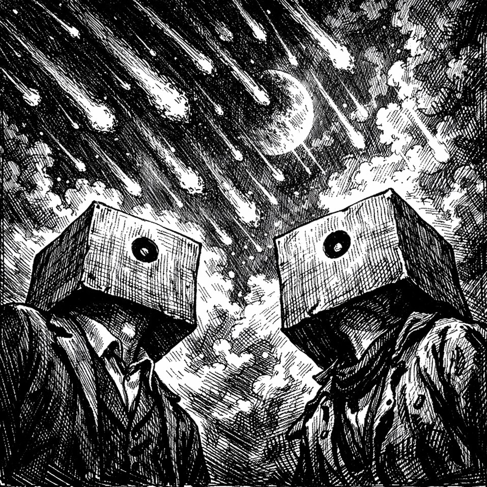 You know how during a solar eclipse you can make a pinhole camera inside a cardboard box so you can safely witness something too bright and overwhelming to look at directly. This felt like that. Only instead of an eclipse it was an intense meteor storm ripping through the atmosphere. Fire in the sky. Chaos above. And we stood below with cardboard boxes over our heads, each with a small viewing hole. Not hiding. Not blind. Just filtering the scale of it.