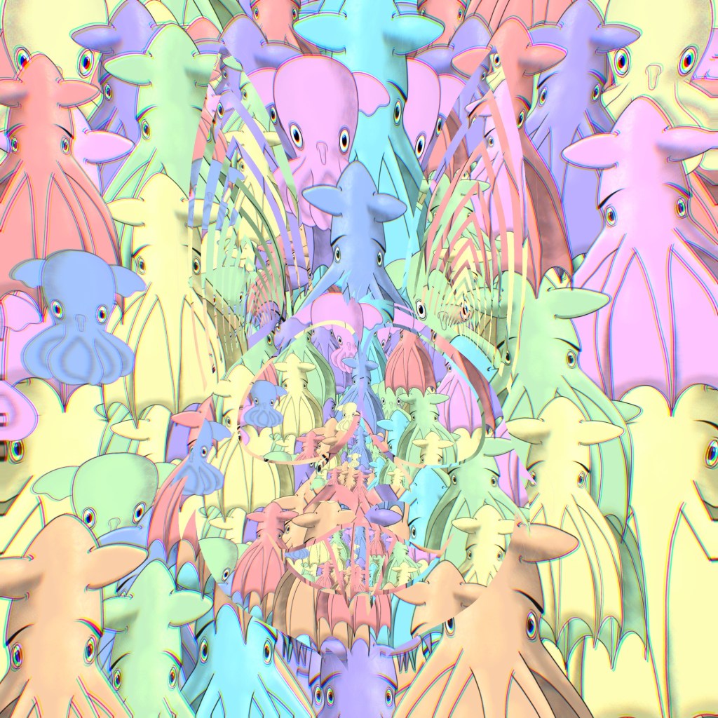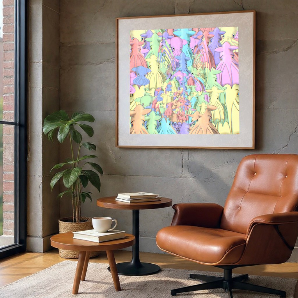 There is something quietly unsettling about this Hypno bat piece, where the soft pastel wallpaper feels harmless at first glance until your eyes begin to adjust and the pattern stops behaving, revealing a hidden presence woven through the rhythm of vampire squid and the alien grace of the dumbo octopus, like the wall itself is watching back and waiting for you to notice. It plays with that old human instinct to find faces in chaos, except this time the illusion is not imagined, it is embedded, a deliberate signal hiding in plain sight that rewards stillness over scrolling and reminds you that attention is a kind of currency most people have already spent.